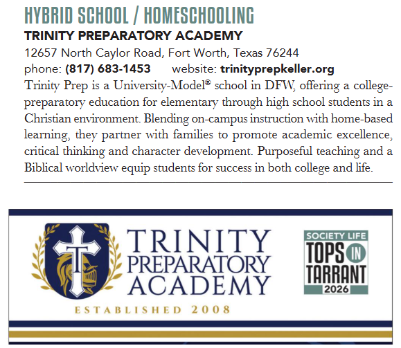 Trinity Prep is one of few University-Model® schools in the Dallas-Fort Worth metroplex. A University-Model® school is a blend of the most positive aspects of traditional public and private schools in a family-friendly Christian environment that offers elementary through high school students a rewarding college preparatory education.